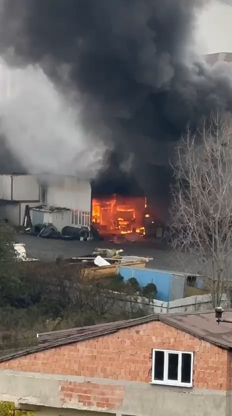 Arnavutköy, Boğazköy İstiklal Mahallesi’nde bulunan TIR tamirhanesinde yangın çıktı.