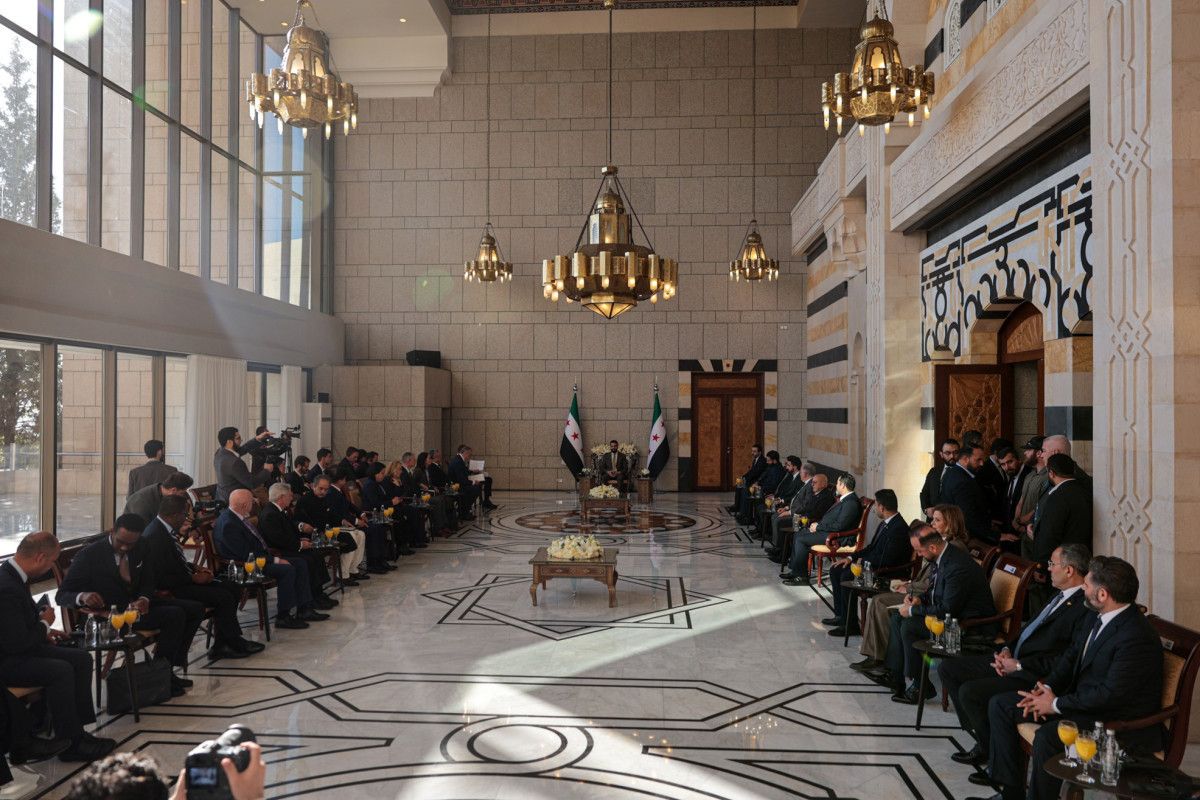 Heyet, daha sonra Halk Sarayı’nda Devlet Başkanı Ahmed eş-Şara ile bir araya geldi.