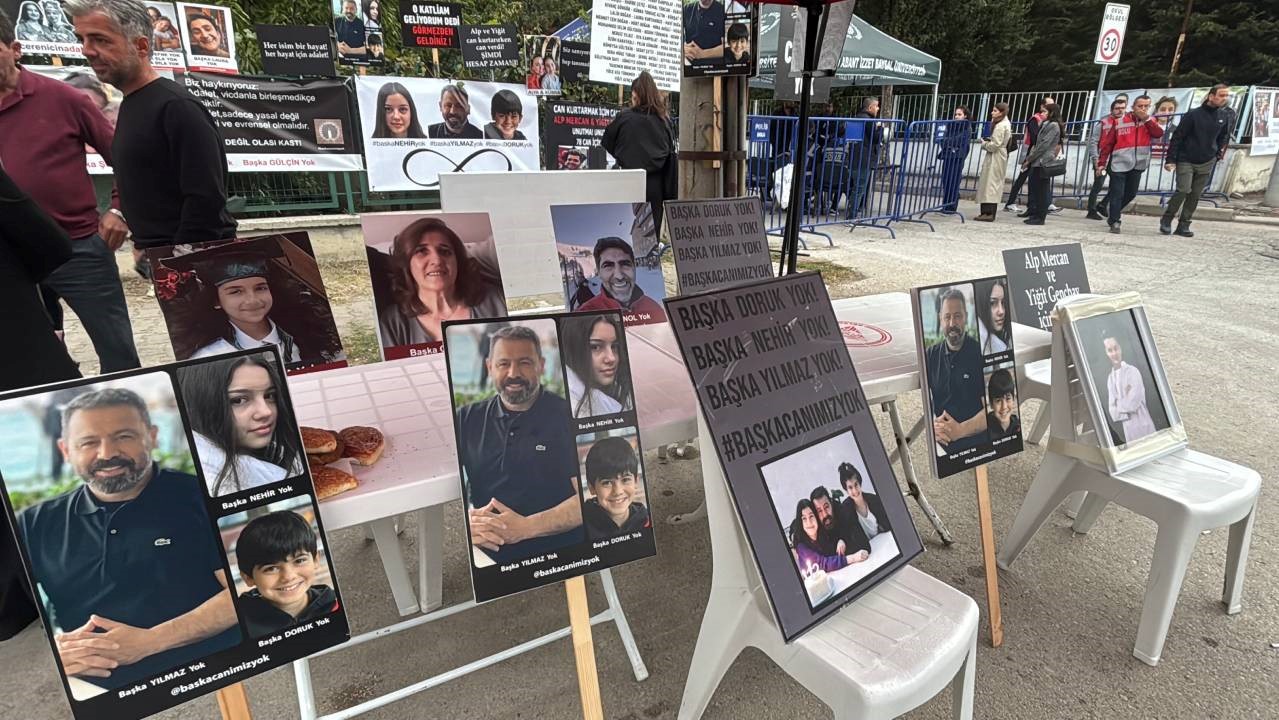 Kartalkaya otel yangını davası öncesi yakınlarını kaybedenler, duruşma salonunun dışına faciada hayatını kaybedenlerin resmini astı.